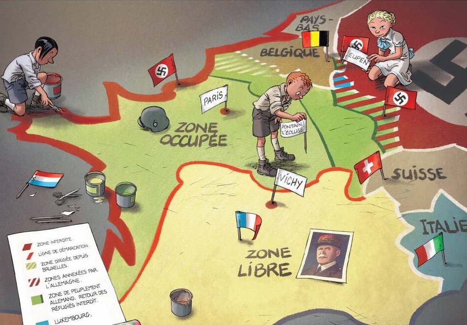 En juin 1940, l’armée française ne parvient plus à repousser les forces militaires allemandes. C’est la débâcle ! Une partie de la population fuit massivement vers le sud. Le maréchal Pétain signe alors l’armistice avec l’Allemagne nazie, avant de devenir le chef de cette France occupée.